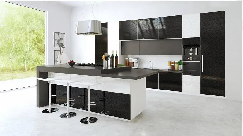 - Современные производители мебели предлагают уникальный вариант кухни с барной стойкой, встроенной в гарнитур. При необходимости конструкция выдвигается, обеспечивая местом для быстрого перекуса и чаепития. Для удобства стойка обычно оснащена колесиками. Единственный ее недостаток – это относительно высокая стоимость.