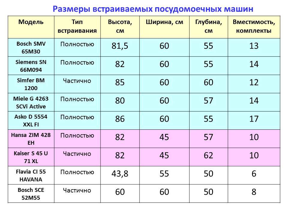 Приведем несколько примеров моделей таких посудомоечных машин, представив информацию в таблице.