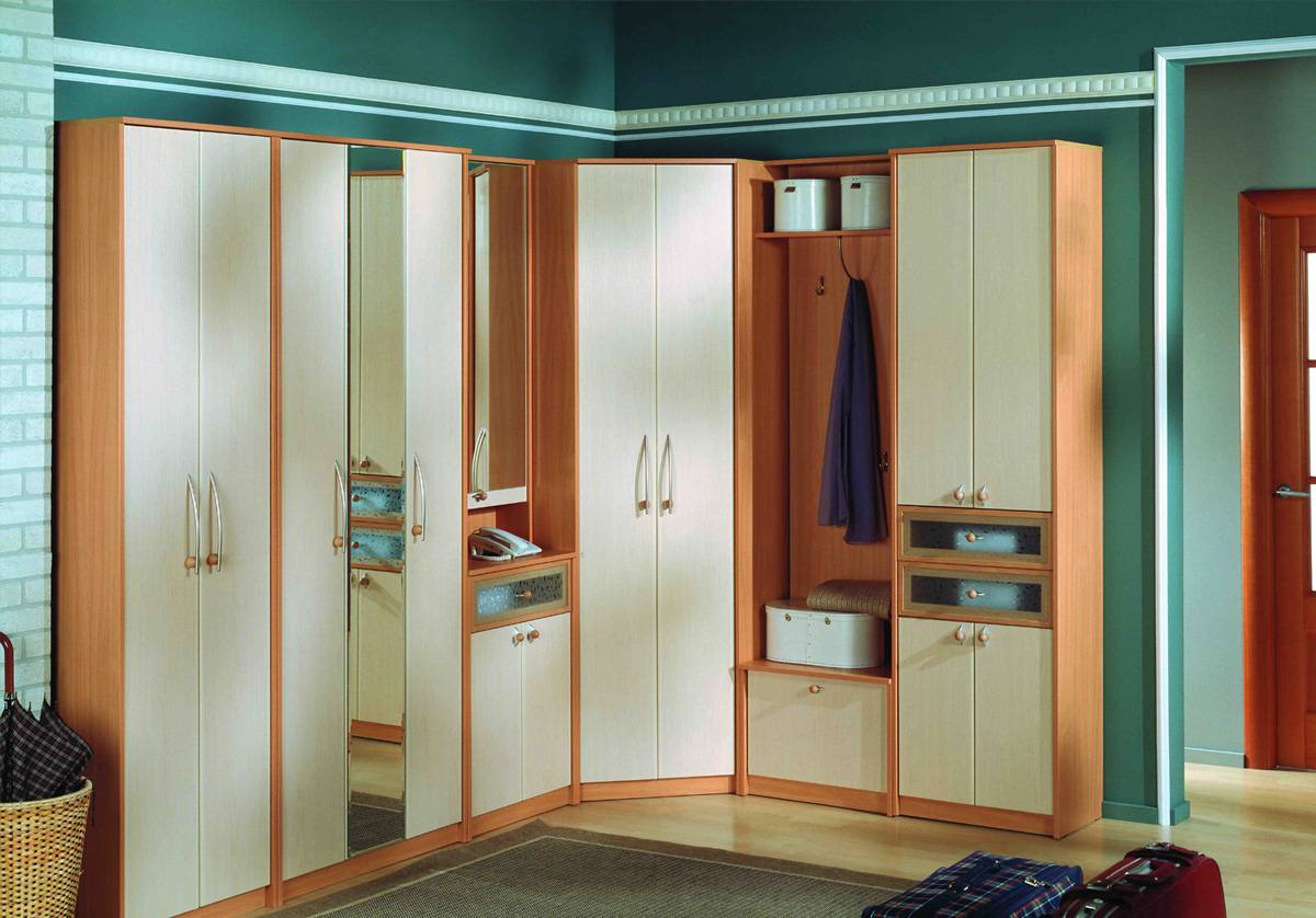 Самый важный элемент мебели в прихожей – шкаф. Он должен вмещать всю верхнюю одежду и обувь. Для коридора подходит как классический вариант шкафа или шкафа-купе, так и встроенные или угловые конструкции