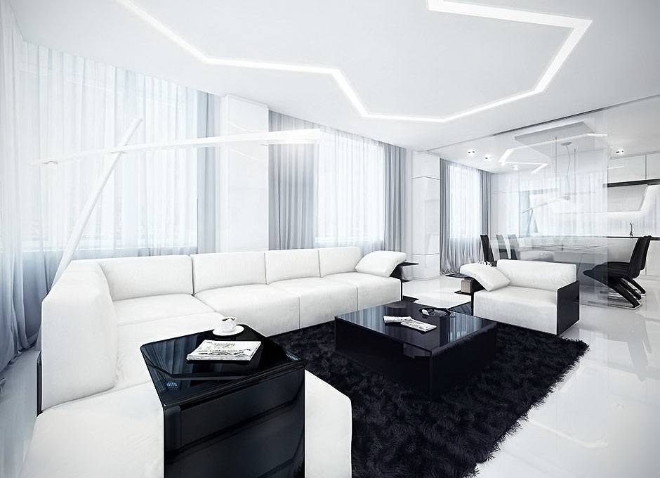 Используйте контрастные цвета для определения зон, предназначенных для разных целей. Декоративный потолок также можно использовать для визуального разделения разных помещений в комнате.