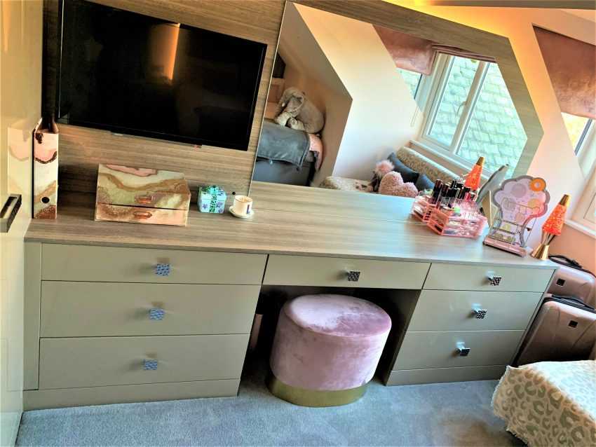Рабочий или туалетный столик логично устанавливать у окна — причем для правши окно должно остаться слева, а для левши — справа. Тогда вы не будете закрывать себе свет и дополнительное освещение в дневное время не понадобится.