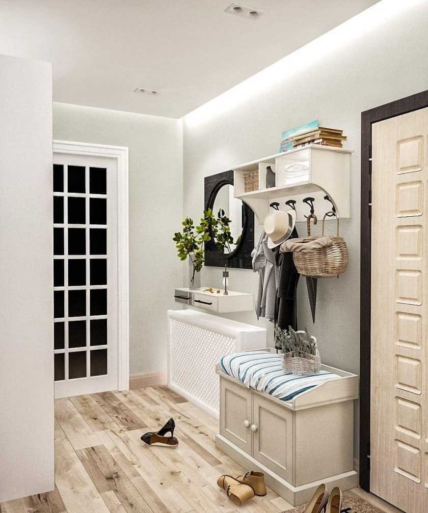 Светлые оттенки занимают лидирующее место при планировке маленькой прихожей. Поскольку так появляется возможность, хотя бы зрительно увеличить узкое пространство.