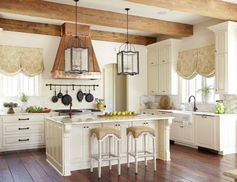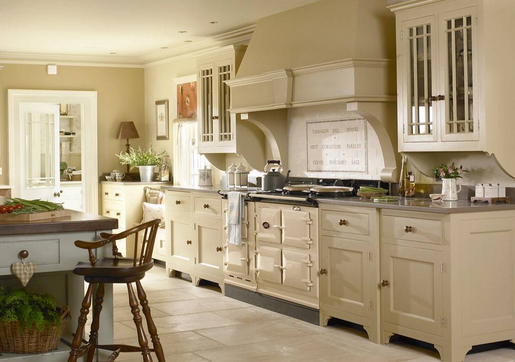 Бежевая палитра универсальна и прекрасно подходит для кантри-кухни. Можно отдать предпочтение льняному оттенку или насыщенному карамельному.