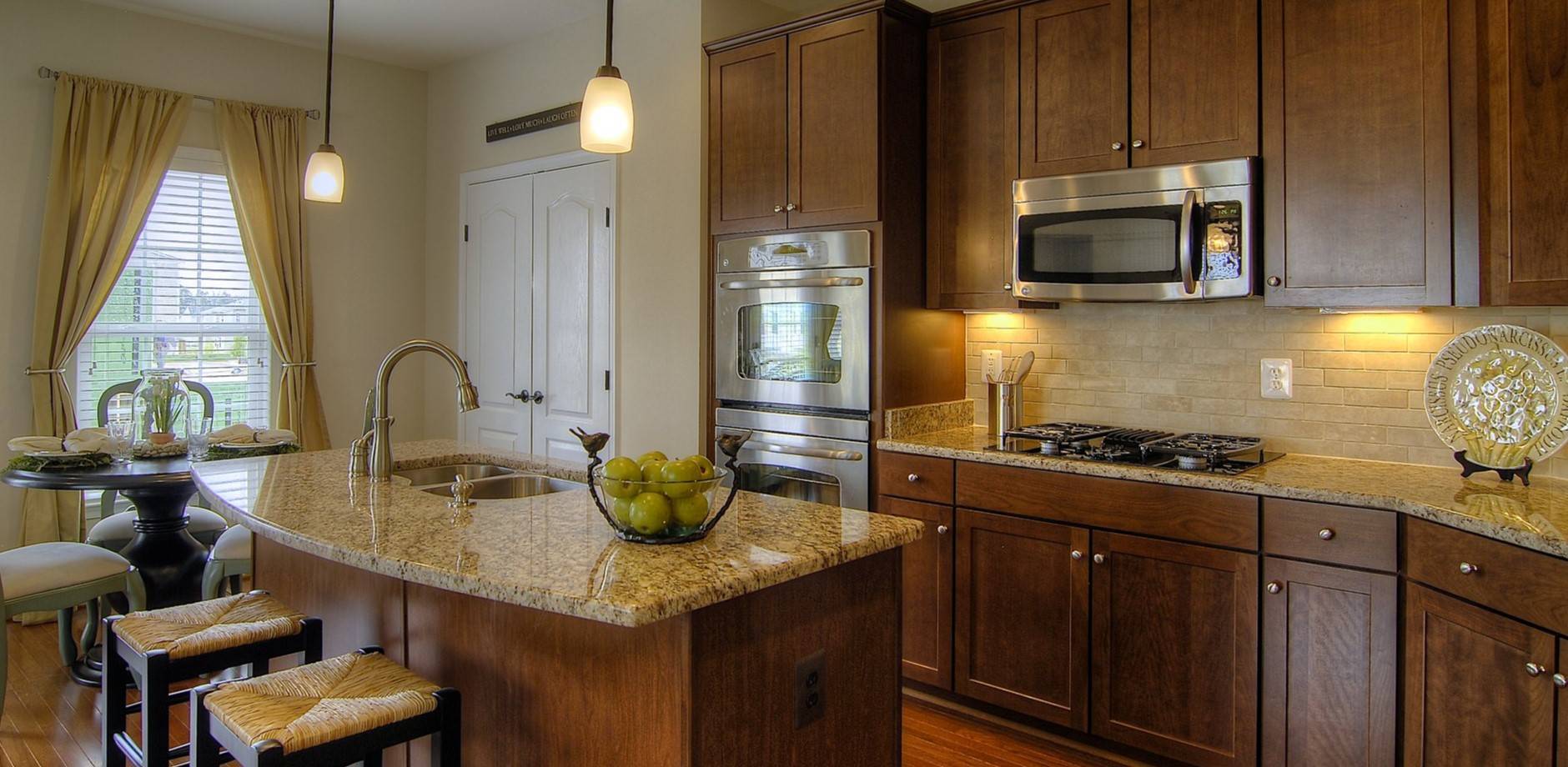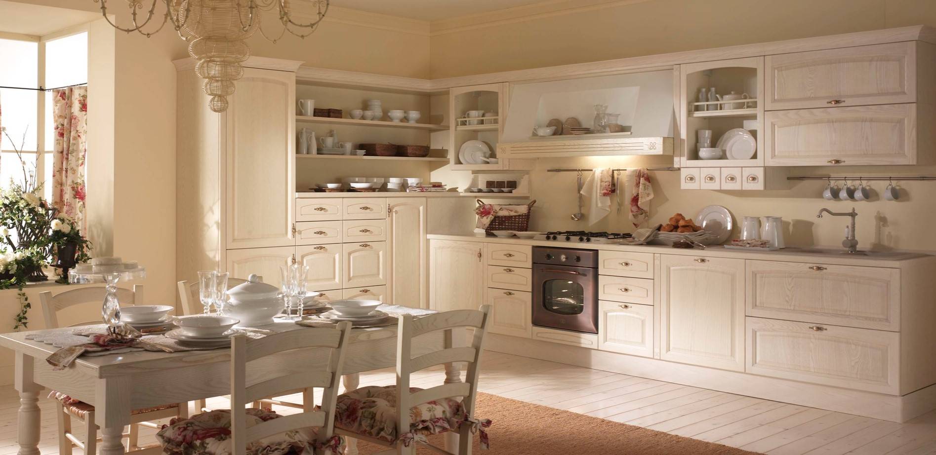 Мебельные гарнитуры для кухни, оформленной в стиле кантри, должны быть только из натурального дерева, как правило, это массив или шпон.Цвет кухонной мебели чаще бежевый или оливковый.