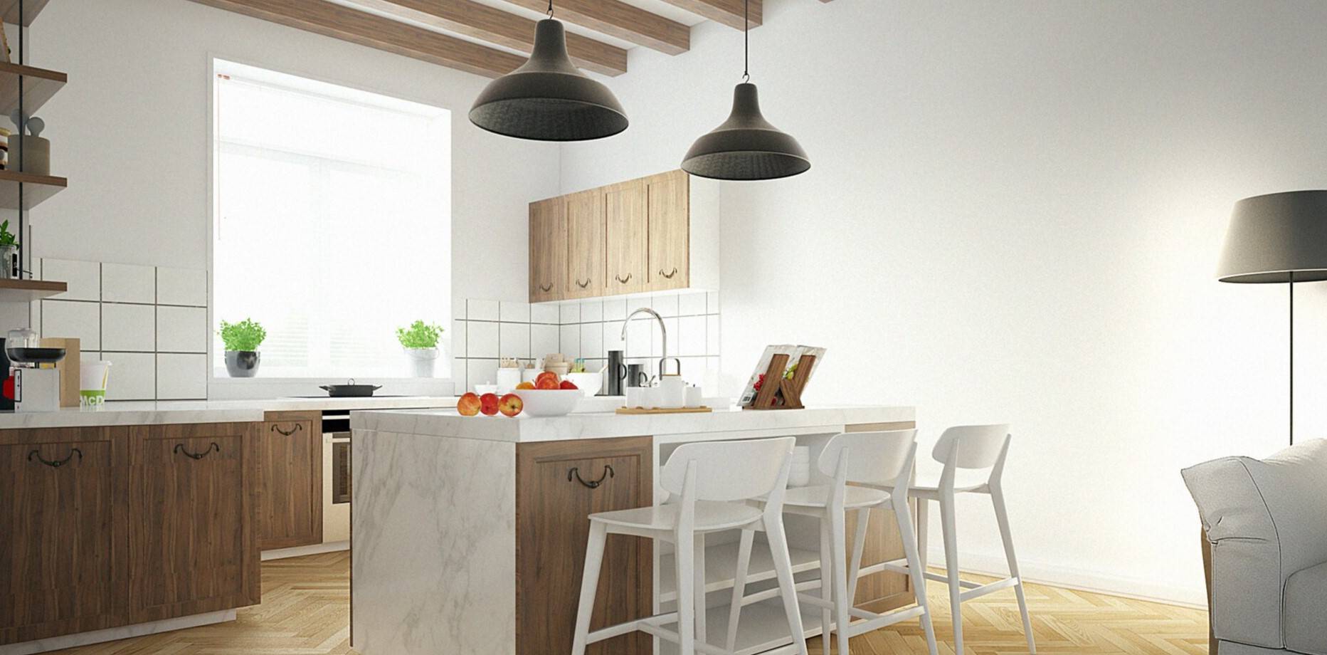 Дерево. Такая обшивка потолка создаст ощущение, будто вы находитесь в деревянном доме, а не в загородной квартире. Для кухонь с высокими потолками можно остановиться на темных породах дерева, для маленьких помещений лучше выбирать светлые модели.