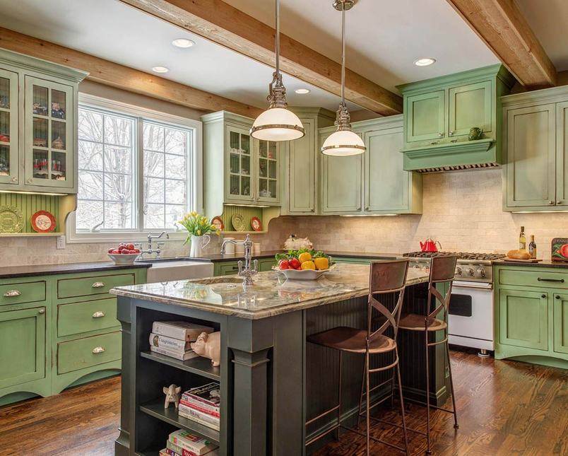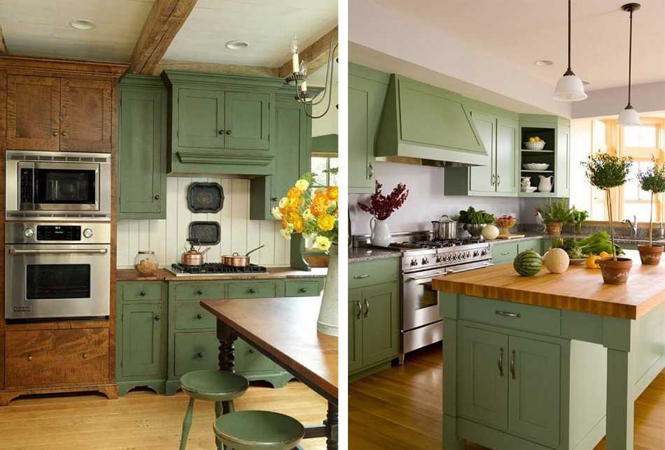 Зеленый колер идеально подходит для кантри-дизайна. Подобное оформление вызывает ассоциации с летом, выглядит свежо.