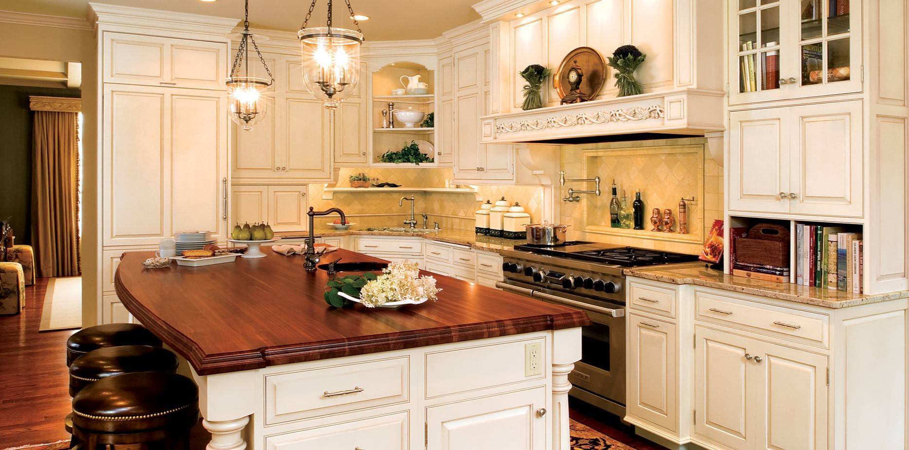 Можно выбирать тот или другой вариант, но гарнитур должен соответствовать размерам помещения. Для прованского стиля на кухне типично наличие отдельной зоны, в которой имеется шкафчик-хранилище и рабочий стол для разделки продуктов. Здесь хозяйка может без помех возиться с тестом. Но если площадь кухни маленькая, от такого «островка» придется отказаться, поскольку уменьшение пространства кухни будет создавать большие неудобства.