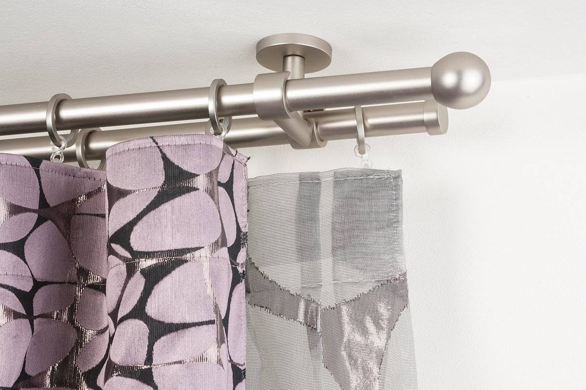 В том случае, когда тяжёлый карниз имеет длину более двух метров, он обязательно будет фиксироваться кронштейном посередине для предотвращения провисания.