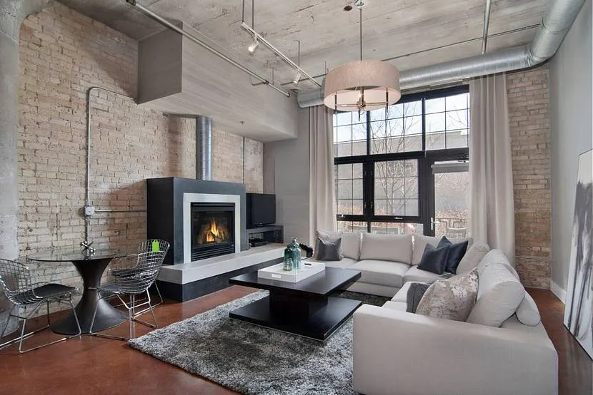 Гостиная в стиле лофт со столиками, подчеркивающими дизайнИсточник akbarsaero.ru