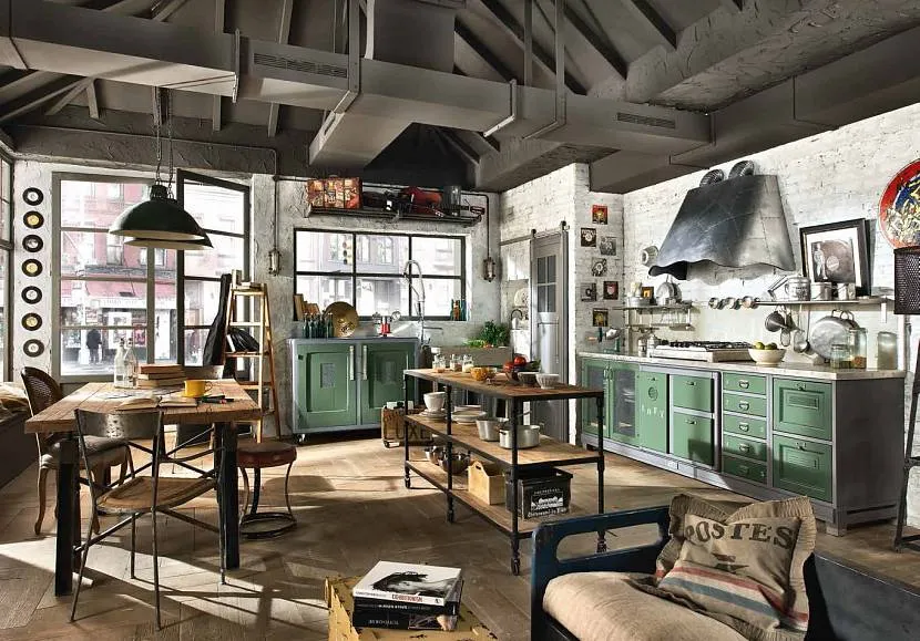 Массивный кухонный стол из дерева в стиле лофтИсточник ital-moscow.ru