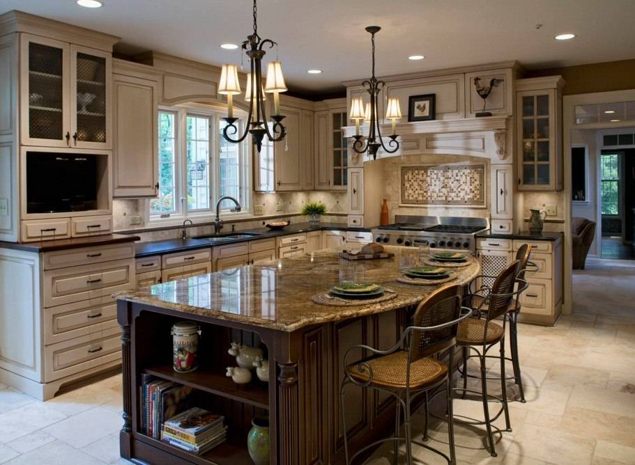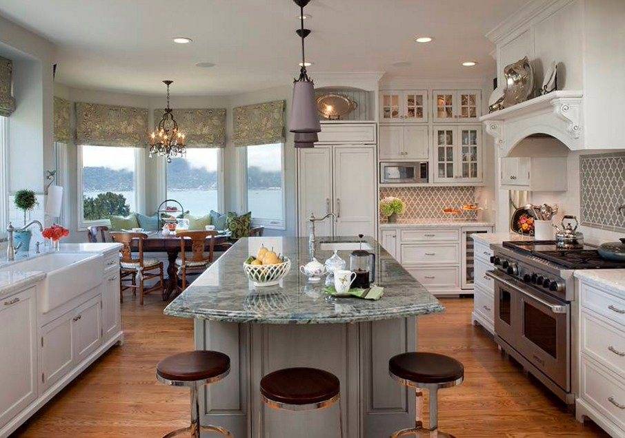 Прекрасным выбором при обустройстве кухонного пространства является сочетание классики и современности. Конечно же, такое объединение стилей довольно смелое. Но если подойти к процессу с полной ответственностью, результат получится блестящим. Для этого достаточно подобрать классическую мебель и придать ей современный внешний вид с помощью текстиля, принтов и орнаментов. В отдельной статье, вы можете почитать подробнее о кухне в стиле современная классика.