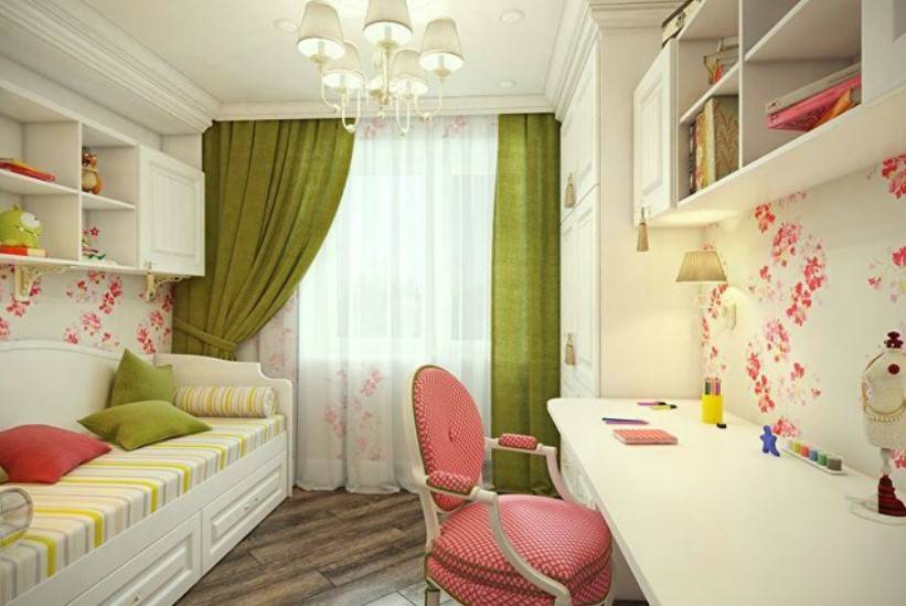Шторы должны соответствовать стенам, но иметь цветочный узор или рисунок.