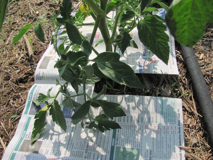 Следующий материал по популярности – это газеты. Газеты отлично соответствуют статусу мульчи по функциям. При их использовании необходимо обложить вокруг куста 2-3 слоя газет и прикрыть их слоем свежей травы, либо земли.