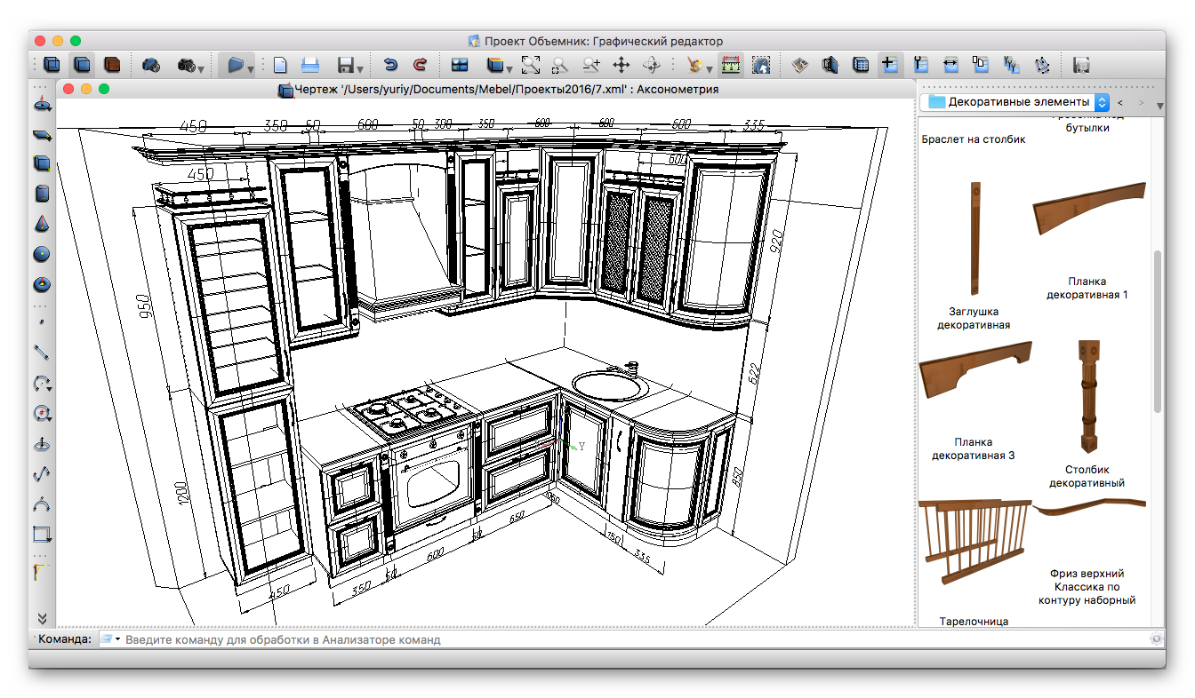 Объемник – это полнофункциональное программное решение для проектирования мебели и разработки дизайна интерьера, созданное и активно используемое на действующем производстве. Работа с мебелью в данной программе осуществляется по параметрической модели. Это значит, что каждый отдельный элемент, имеющийся во внутренней библиотеке, добавленный в нее вручную или спроектированный с нуля, легко редактируется посредством стандартного инструментария. Изменению здесь поддается положение в пространстве, углы, габаритные, конструктивные и многие другие параметры.