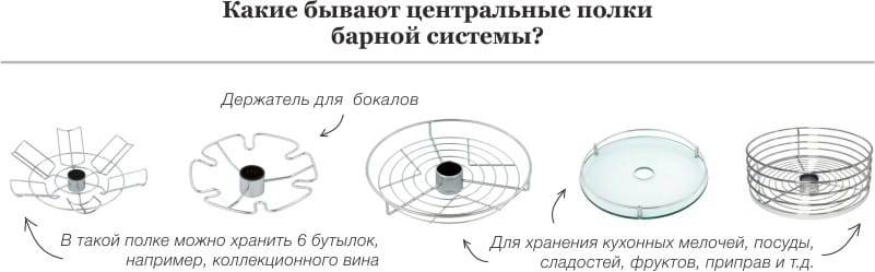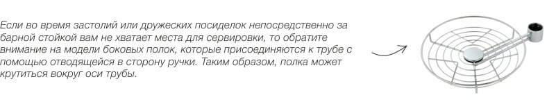 - Центральные полки для барной стойки, которые крепятся на трубу по центру;