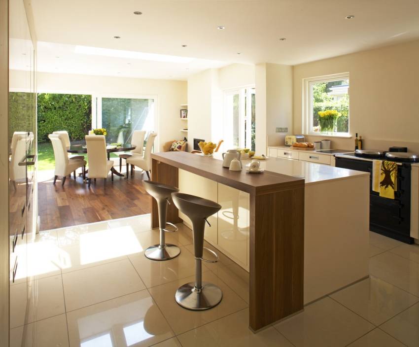 В любом случае такое интерьерное решение не занимает много места и является более эргономичным, чем обеденный стол. Даже в больших помещениях, где барная стойка выступает как независимый кухонный элемент — это место и для утреннего кофе, и семейные посиделки в узком кругу, и быстрые перекусы, когда не хочется полноценно сервировать стол.