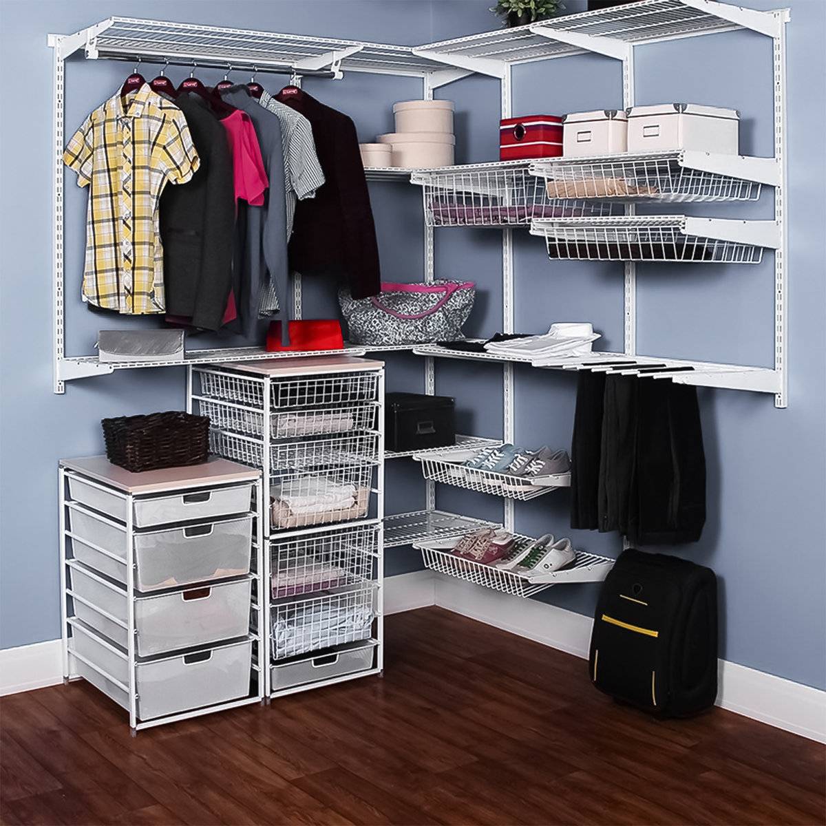 Такие системы для хранения вещей наиболее разнообразны. В зависимости от пожеланий домашнего мастера их можно установить не только в качестве гардеробной системы. «Эльфа» предлагает комплектующие для гаражей, прачечных, детских или кухонь. Сборка любой из моделей вполне по силам домашнему мастеру даже в одиночку.