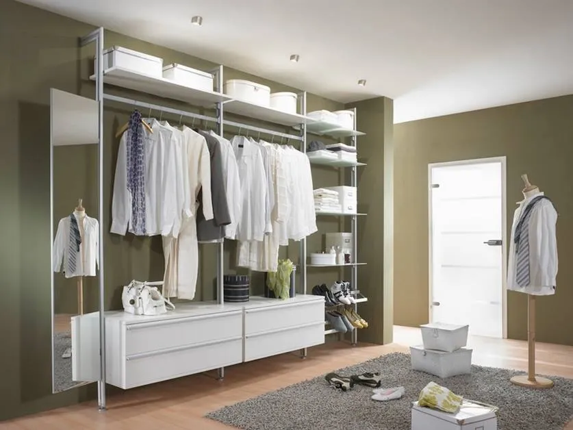 Если вы решили выделить под гардероб отдельную комнату, то каркас-комплекс станет удобным вариантом для ее оформления.