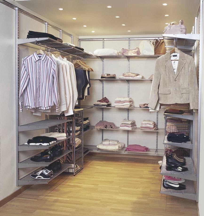 - различного размера полки, которые могут быть металлическими или из ДСП. Выбирать тот или иной вариант следует, опираясь на то, какие вещи планируется хранить в этом шкафу.