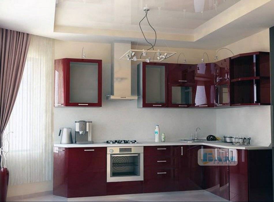 Натяжные двухуровневые потолки достаточно часто встречаются в современном дизайне кухонь. В качестве материала для создания подобных конструкций применяют ПВХ. Этот материал не впитывает запахи, устойчив к воздействию копоти, высокой температуры и пара, а также легко чистится. Часто в процессе создания используют потолочный плинтус, который является завершающим элементом конструкции.