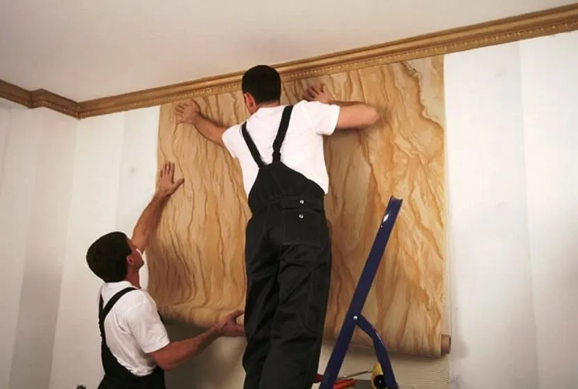 - Монтаж полотна может привести к повреждению обоев. Как уже говорилось, в этом случае все зависит от профессионализма исполнителей, в целях обеспечения защиты также применяется покрытие стен пленкой.
