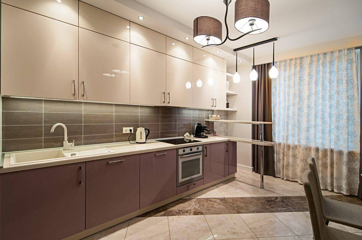 Допускается разбавлять два тона изумрудным, фисташковым и переливающимся. Бежевый с красным. Такой интерьер должен получиться сдержанным. Чтобы комбинация была идеальной и умеренной, необходимо использовать ограниченной количество красного. Например, достаточно отделить верхнюю часть стены над мебелью. При этом весь фасад гарнитура стараются выполнять в светлом цвете. Бежевый и синий также стоит комбинировать с умом. Например, при установке осветленного гарнитура, достаточно лишь организовать мягкий уголок в обеденной зоне. Также допускается зедекорировать одну из стен или искусственных перегородок, если такие имеются. Фиолетовый тон с бежевым смотрится эффектно только в том случае, если он применяется для облицовки рабочей зоны. Здесь же допустим декор в флористическом направлении. Салфетки и текстиль также создаются в фиолетовом цвете для визуального акцента.