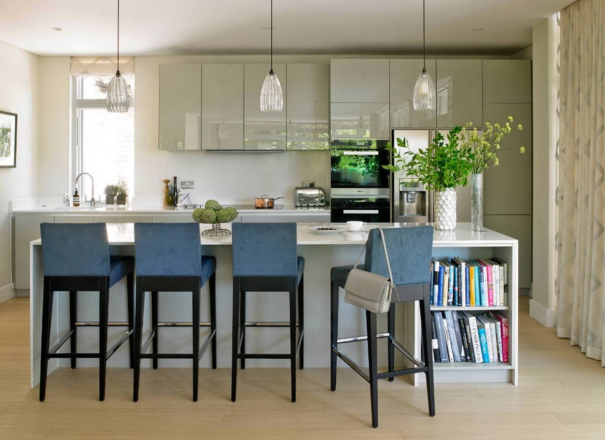 Это один из самых распространенных вариантов дизайна кухни. Современный стиль включает в себя простоту, элегантность и практичность. Чистые линии, мебель со стальными фасадами, экологические предметы, лаконичная фурнитура. В сочетании с оттенками серого современный интерьер может выглядеть как смело (в случае ярких акцентов в виде креативной посуды, необычного освещения и узорчатых тканей), так и спокойно (на фоне натуральной мебели и декора ручной работы).