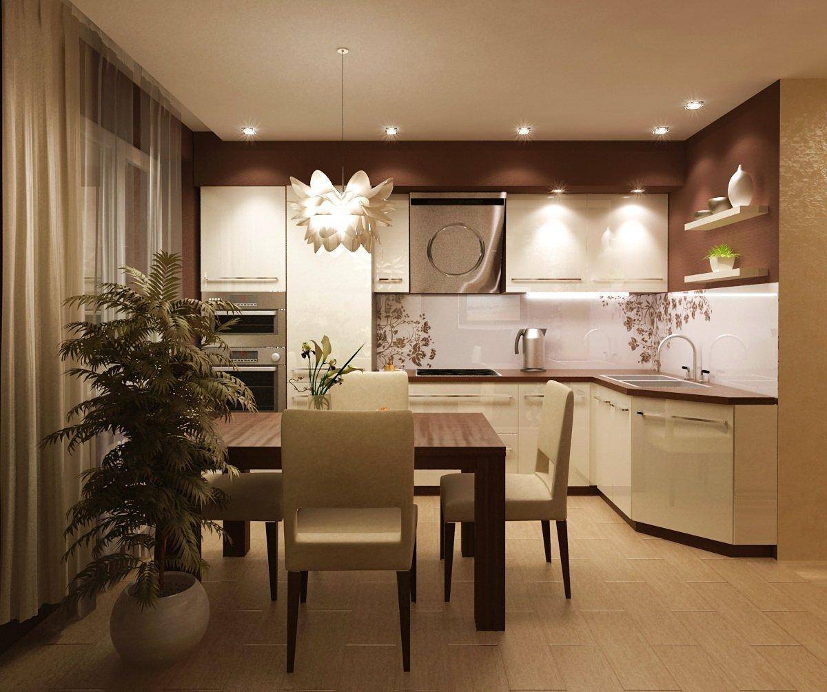 - Освещение в кухне с преобладанием бежевого цвета должно быть строго желтым. Для этого стараются использовать плафоны и настенные бра. Лишь в некоторых зонах допускается точечное освещение.