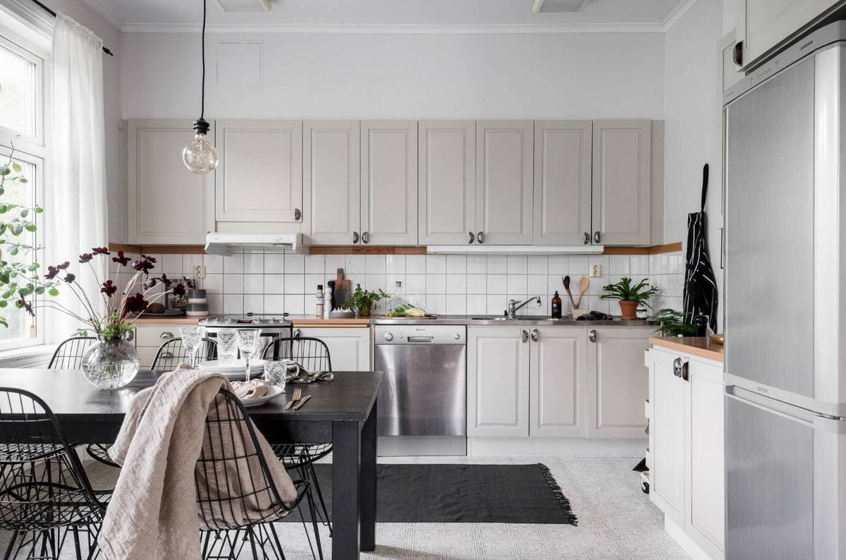 Деревенский шарм, простота мебели и тканей, украшения из натуральных материалов, плетеные предметы. Это лишь небольшое описание уютного прованского стиля, который хорошо сочетается со светло-серым оттенком. Он создаст на кухне дополнительный свет и пространство, характерное для данного направления. Кроме того, серый прекрасно сочетается с декором из бронзы и меди, который является неотъемлемой частью Прованса.