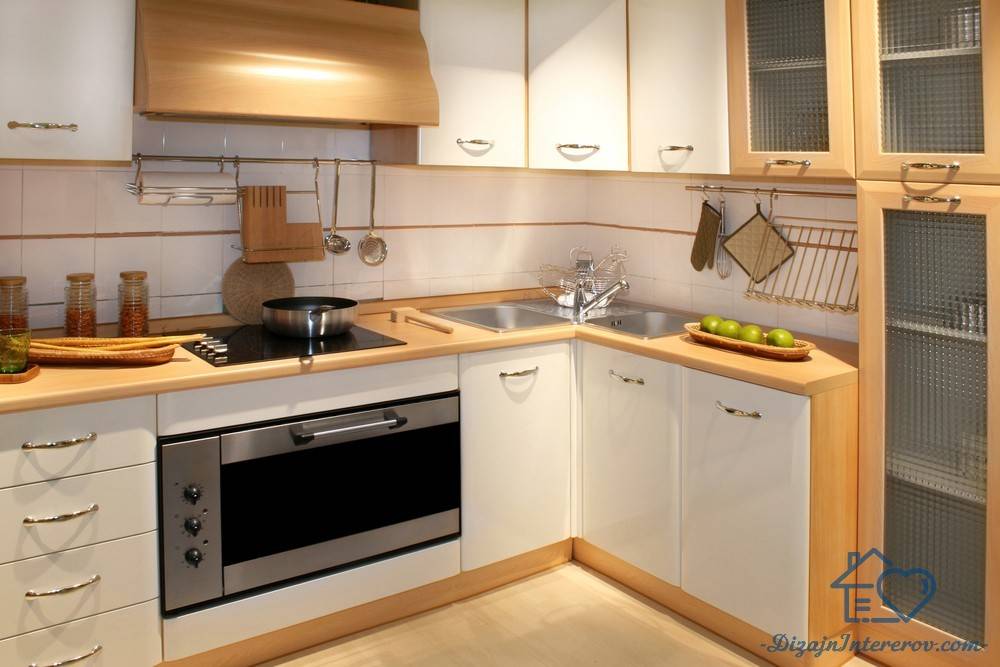 Универсальный вариант, который будет хорошо выглядеть даже на самой маленькой кухне. Бонус в том, что грязь или следы от рук на «деревянном» гарнитуре будут не так заметны, как на белом — это особенно ценится, если в семье есть любопытные маленькие дети.