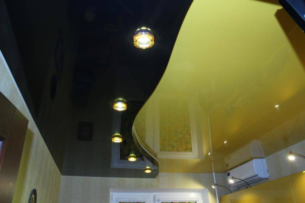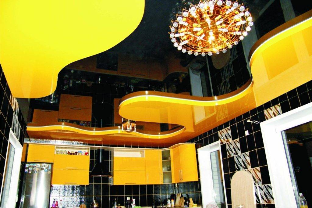 На фото двухуровневые комбинированные конструкции с сочетанием черного и желтого цветов.