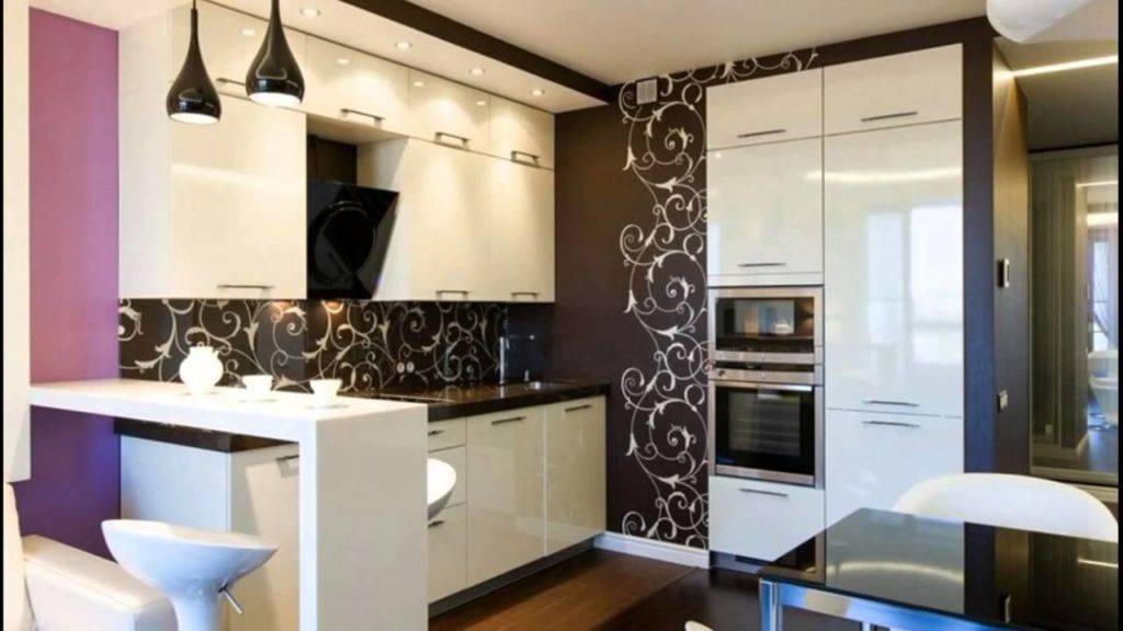 Черно-белая кухня 7 кв м в стиле хай-тек