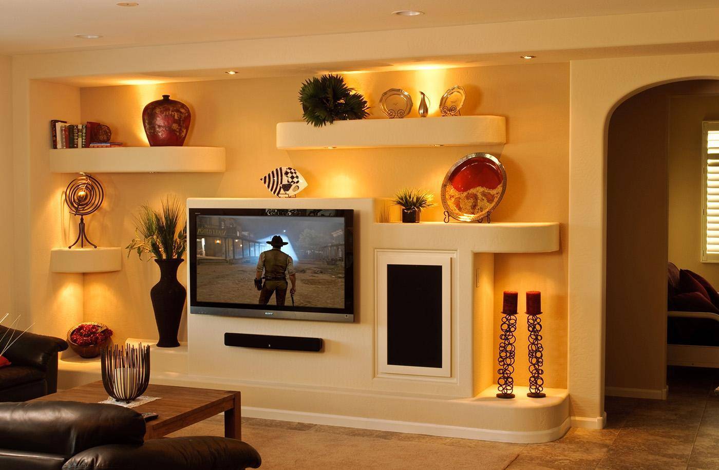 При появлении идеи сделать нишу для телевизора в гостиной или в зале, следует: