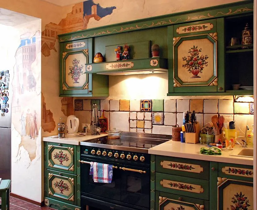 И это далеко не все варианты оформления кухни. При наличии художественных навыков вы можете даже расписать дверцы, как в этом видео: