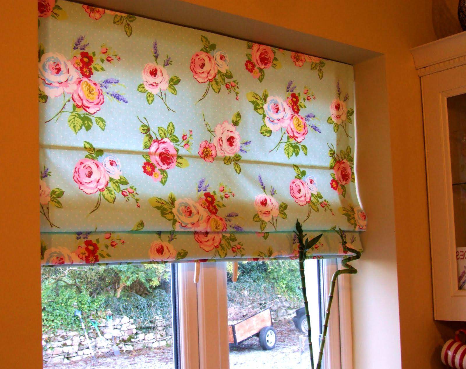 Римские шторы с цветочным рисунком для кухни cozyblog