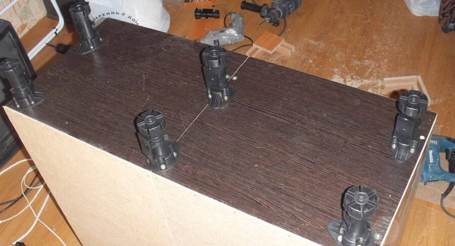 - Если габариты шкафа превышают 80 см, то для большей надежности лучше увеличить количество ножек и добавить посередине изделия дополнительную пару.