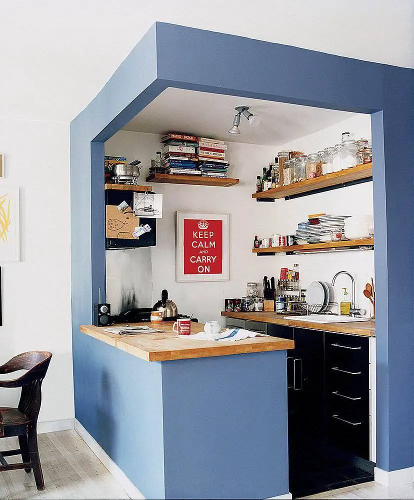Как правило, при ограниченности площади дизайнеры советуют избавиться от стены и объединить кухню с гостиной. А что, если такой возможности (или права) у жильцов нет? Приходится отталкиваться от того, что имеем. Но это вовсе не приговор.