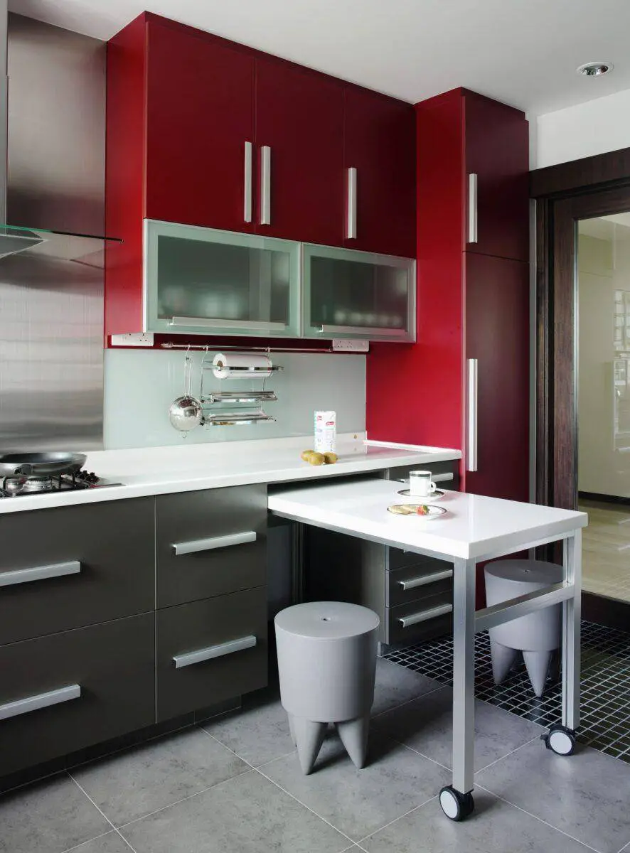 Спасением для маленькой кухни станут откидные и выдвижные столы.