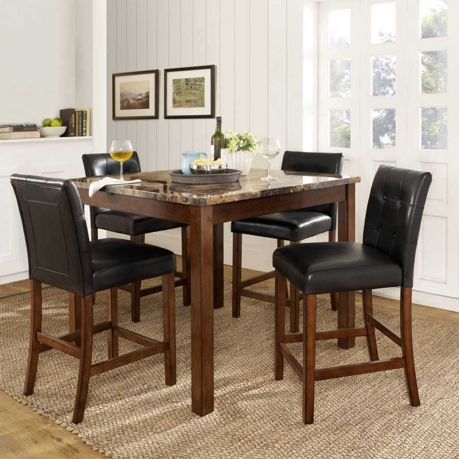 Стол и стулья – основные компоненты столовой зоны на кухне; в отдельных случаях стулья может заменить (или дополнить) диван, кресло, лавка или кушетка. Чтобы обеденная группа смотрелась гармонично, она должна соответствовать по стилю остальной обстановке. Тон задаёт стол и материал его столешницы; популярны следующие варианты: