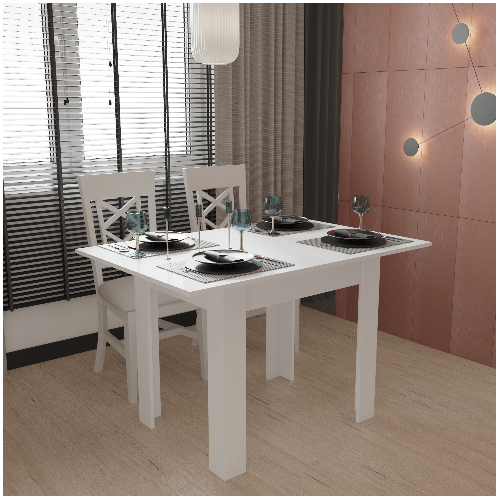 Стильный откидной стол для маленькой кухни с раскладными стульями