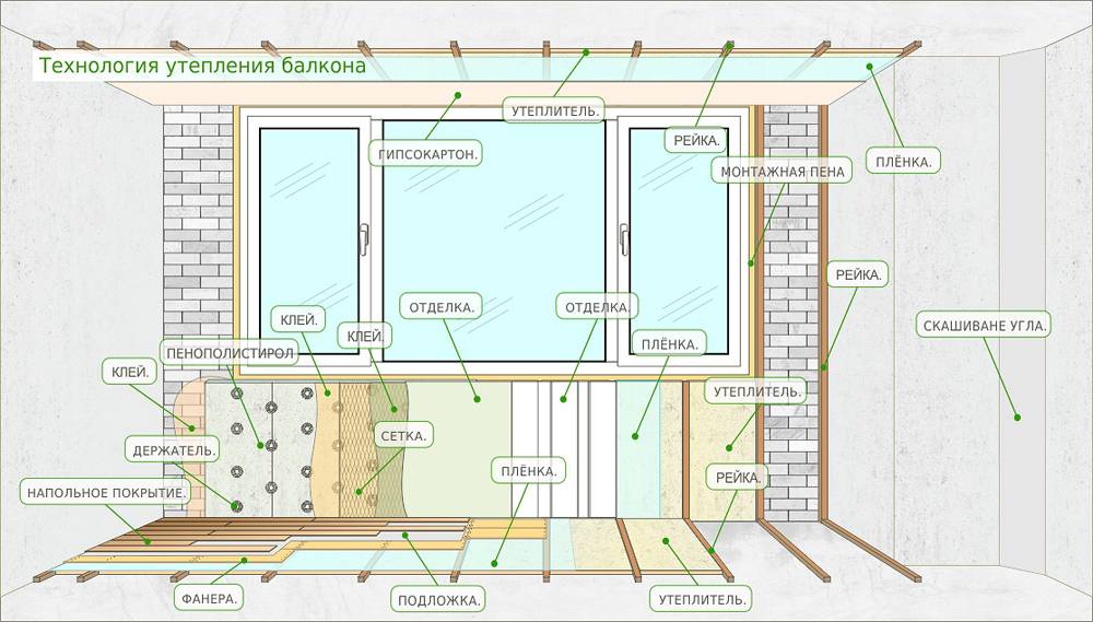 - улучшение теплоизоляционных свойств помещения за счет дополнительного утепления балкона либо лоджии;