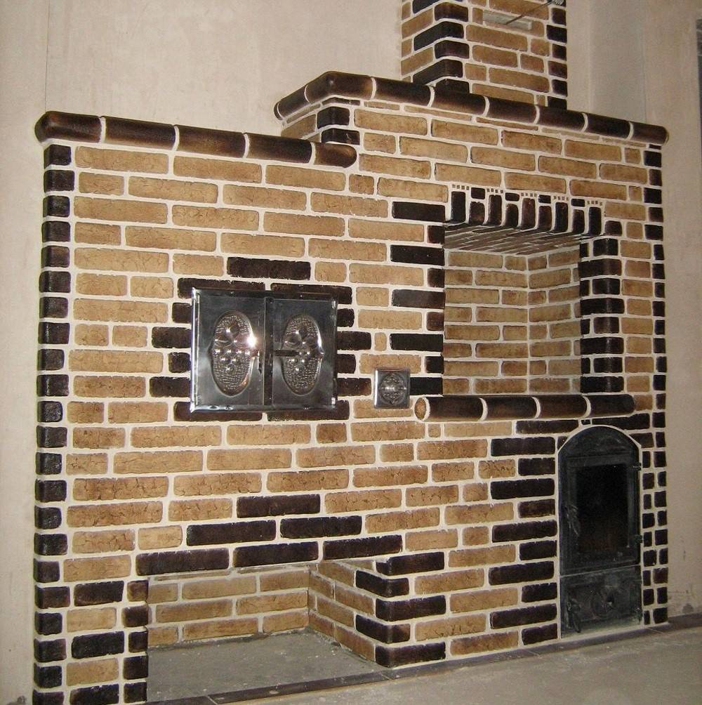 Начнем с традиционных печей, сложенных из кирпича. Разумеется, идеальный вариант – использование лицевого огнеупорного кирпича; в этом случае аккуратная кладка не требует дополнительного оформления. Однако же будем реалистами: многим печам, эксплуатирующимся в частных домах, уже не один десяток лет, и перекладывать их – затея не из дешевых.
