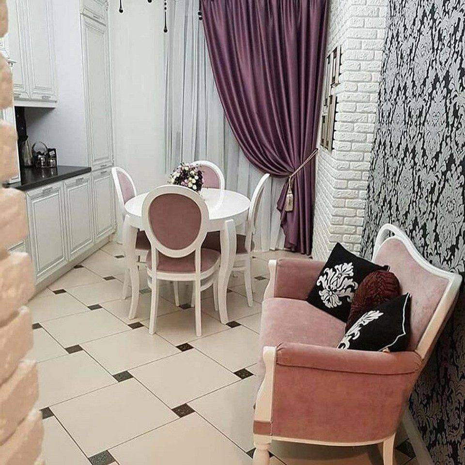 Некоторые владельцы загородных домов в погоне за изысканностью оформления интерьера выбирают тканевой вариант. Несомненно, он смотрится богато, но применять его в обустройстве столовой зоны не рекомендуется – они очень боятся влаги и впитывают запахи.