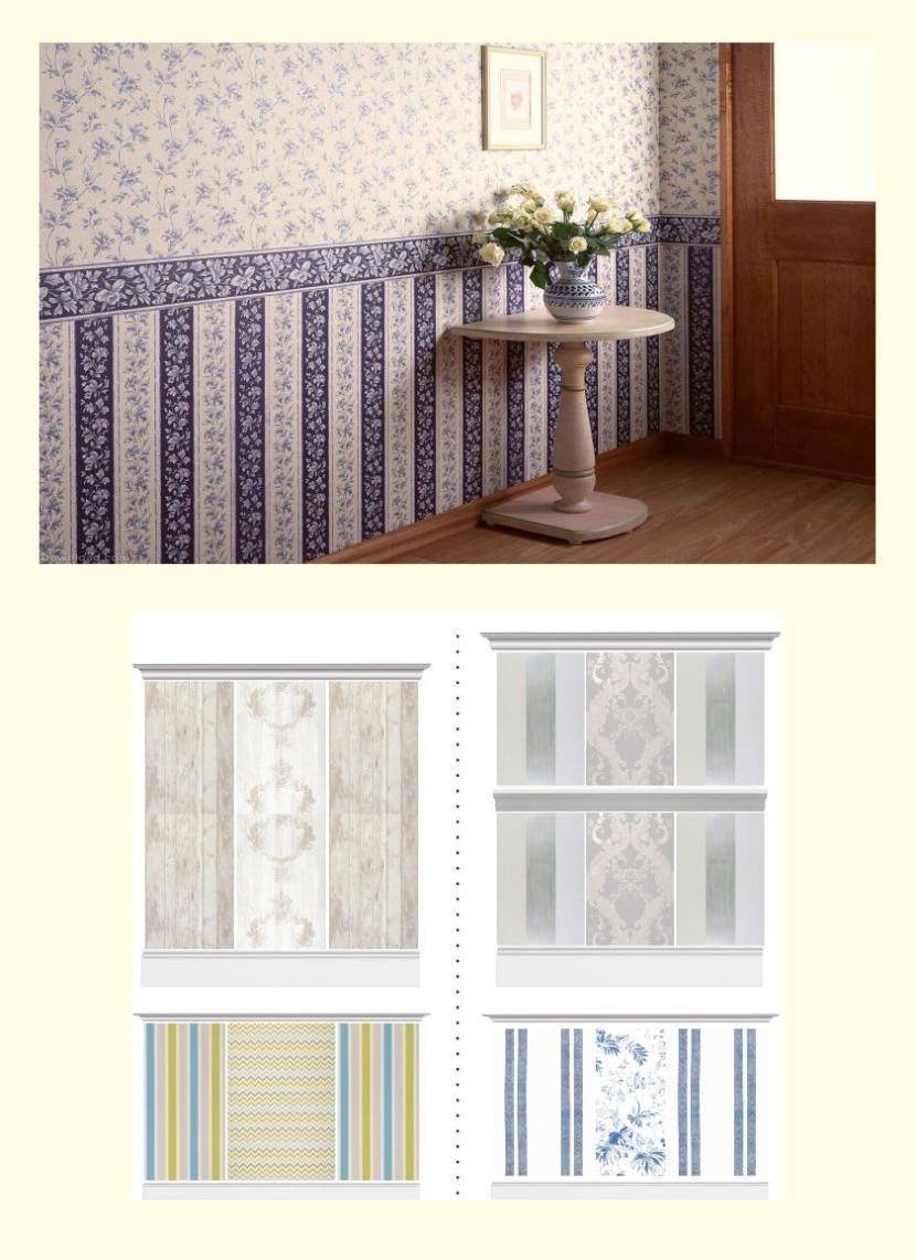 Способ комбинирования обоев, подойдет любителям необычного, сложного дизайна. В ходе отделки стен, можно разграничить различные зоны. Положительный момент комбинирования — это доступность практически любому, так как не подразумевает больших затрат. Сегодня, многие производители практикуют продажу «наборов», из уже скомбинированных полотен.