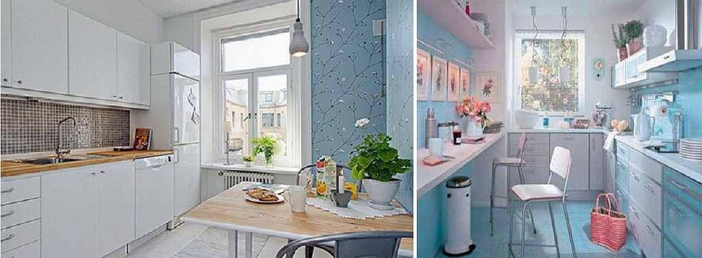 Подойдут ли голубые обои: малогабаритная кухня 180 на 200