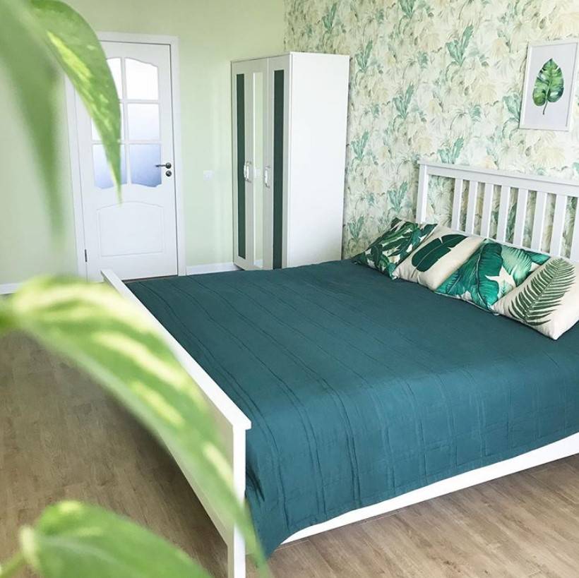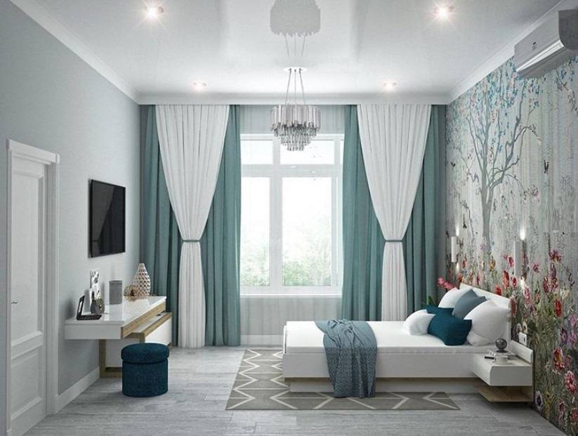 А чтобы немного «охладить» южную спальню — стоит оформить стены в зелено-синих оттенках