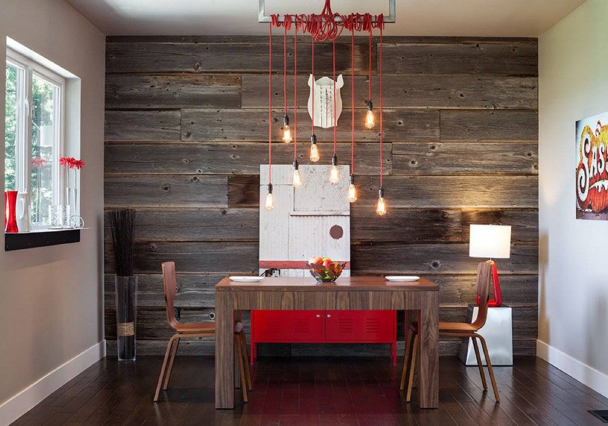 Дерево, к слову, не теряет первозданного вида даже после окрашивания и придания текстуры, однако при этом существенно повышается его стойкость к внешним воздействиям. Если хотите сэкономить, используйте в интерьере панели из МДФ, ДВП и ДСП. Их особенность в том, что текстуру можно выбрать заранее, при этом панели отлично режутся и стыкуются между собой без дополнительных замков, если предварительно обрезаны на заводе. Да и монтировать такие – одно удовольствие.