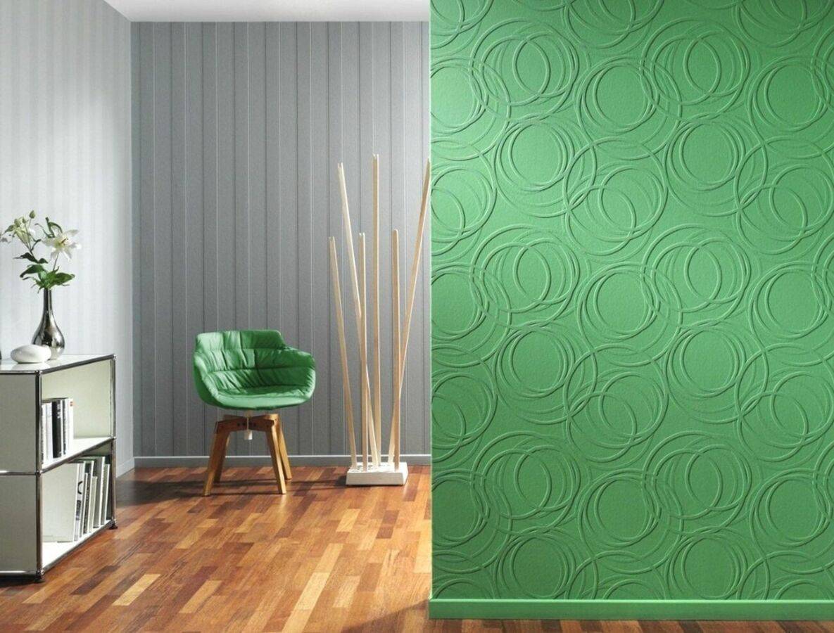 1. Выбрать плотные рельефные покрытия со сложной структурой – хорошо подойдут флизелиновые, вспененные виниловые, обои под кирпич. При оклейке старайтесь расположить полотна так, чтобы стыки обоев не совпадали со швами листов.