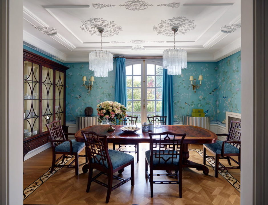 Насыщенные синие обои для интерьера в викторианском стиле