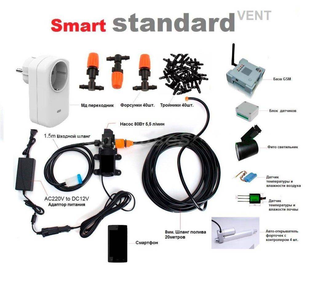 SMART STANDARD VENT «УМНАЯ ТЕПЛИЦА» — набор для автоматизации теплицы. Обладает богатым функционалом, охватывающим практически все сегменты поддержания заданного микроклимата. Для контроля и обмена данными используются гаджеты, связанные с интернетом. Цена от 47,9 тыс. рублей.